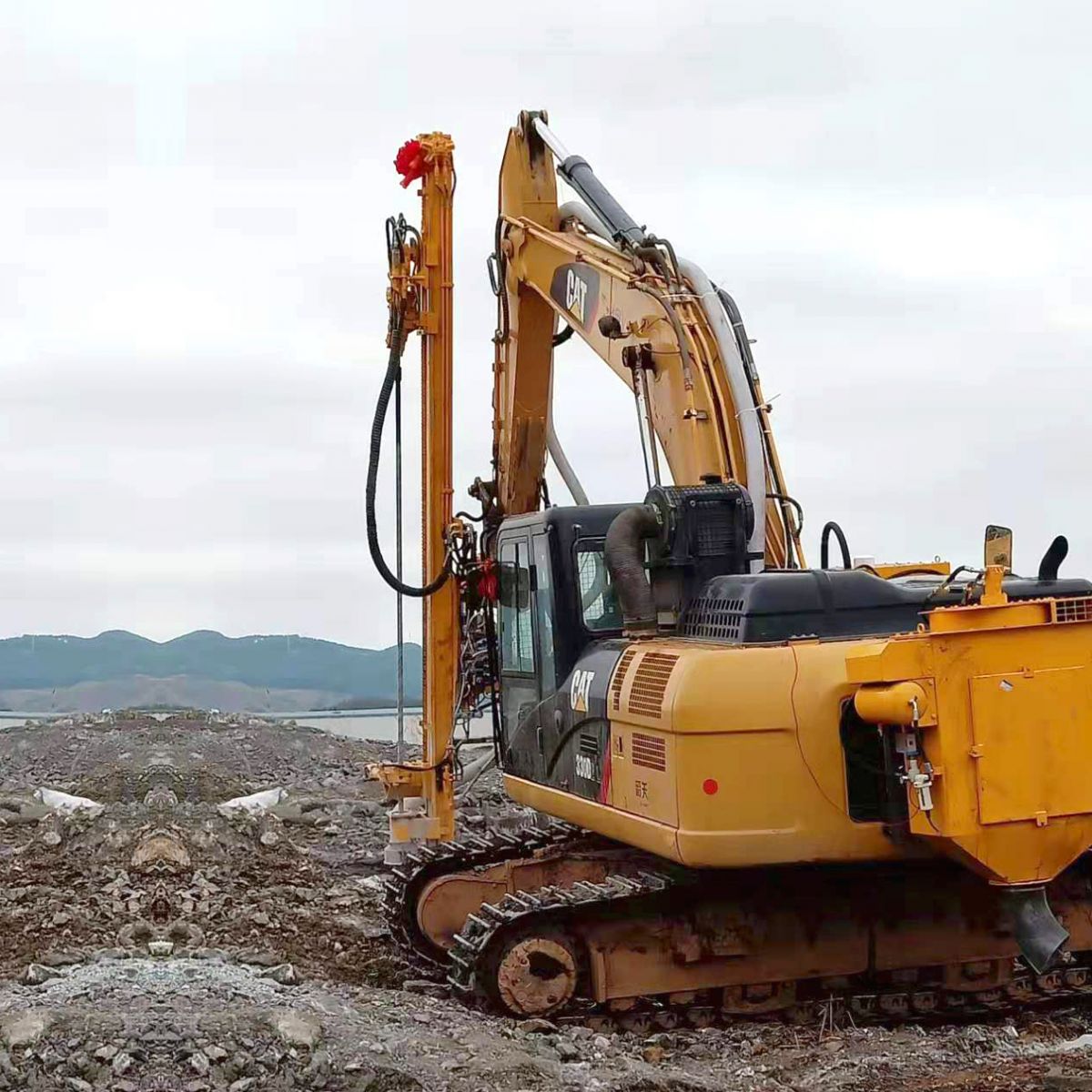 挖斗,即可將挖掘機(jī)改造成液壓鑿巖鉆機(jī)、潛孔鉆機(jī)、螺旋鉆機(jī)、液壓劈裂機(jī),實(shí)現(xiàn)挖掘機(jī)一機(jī)多用的功能, 挖改顧名思義就是在不影響挖掘機(jī)功能的前提下,利用挖掘機(jī)自帶破碎錘油路,連接專用液壓轉(zhuǎn)換裝置,卸除